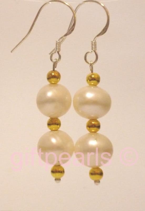 A strikingly glamorous pair of ear-rings. Twin medium-sized 7-8mm lustrous white pearls on Sterling silver hooks.