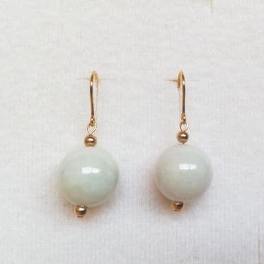 Carefully selected, very fine, pale jade beads, are made into a delightful pair of single drop earrings on simple solid gold hook fittings. Timeless and elegant, these beautiful perfectly round 12mm (half-inch) earrings will complement any style. The short drop design has a tiny amount of discreet movement.