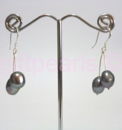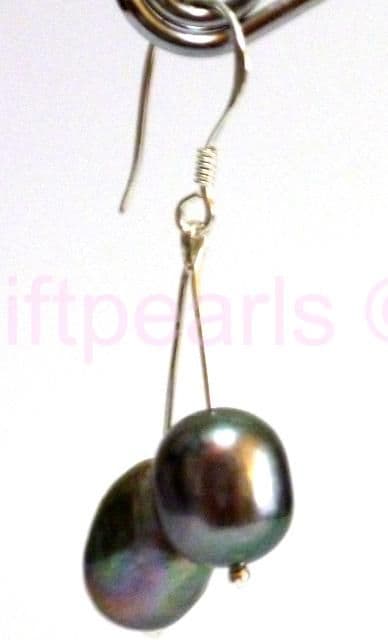 A lovely pair of dark grey-black baroque pearls on Sterling 925 silver hooks.