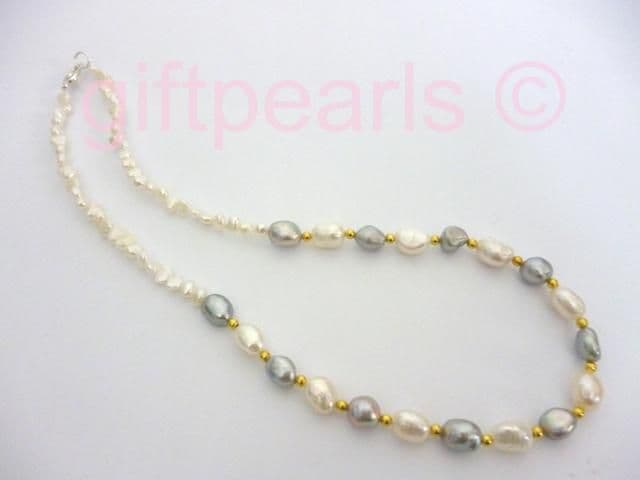 This unusual piece also features tiny white pearls and golden GP beads.